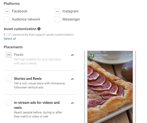 The two placements that convert traffic by far the best are the feed options for Facebook and Instagram. Those are the two placements that are most targeted to people when they are in browse mode.
