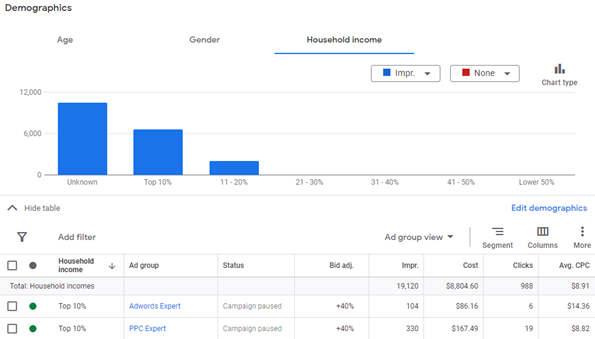 Google lets you adjust campaigns based on 3 demographic categories: Age, Gender, and household income.