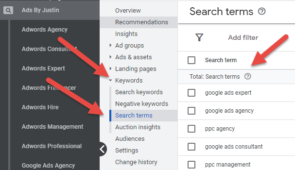 This is by far the #1 thing great google ads managers look at. It shows you the exact search terms that your ads showed up on.