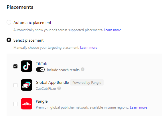 Only run ads on Tik Tok. The other placements that I have unchecked in this screenshot do not convert.